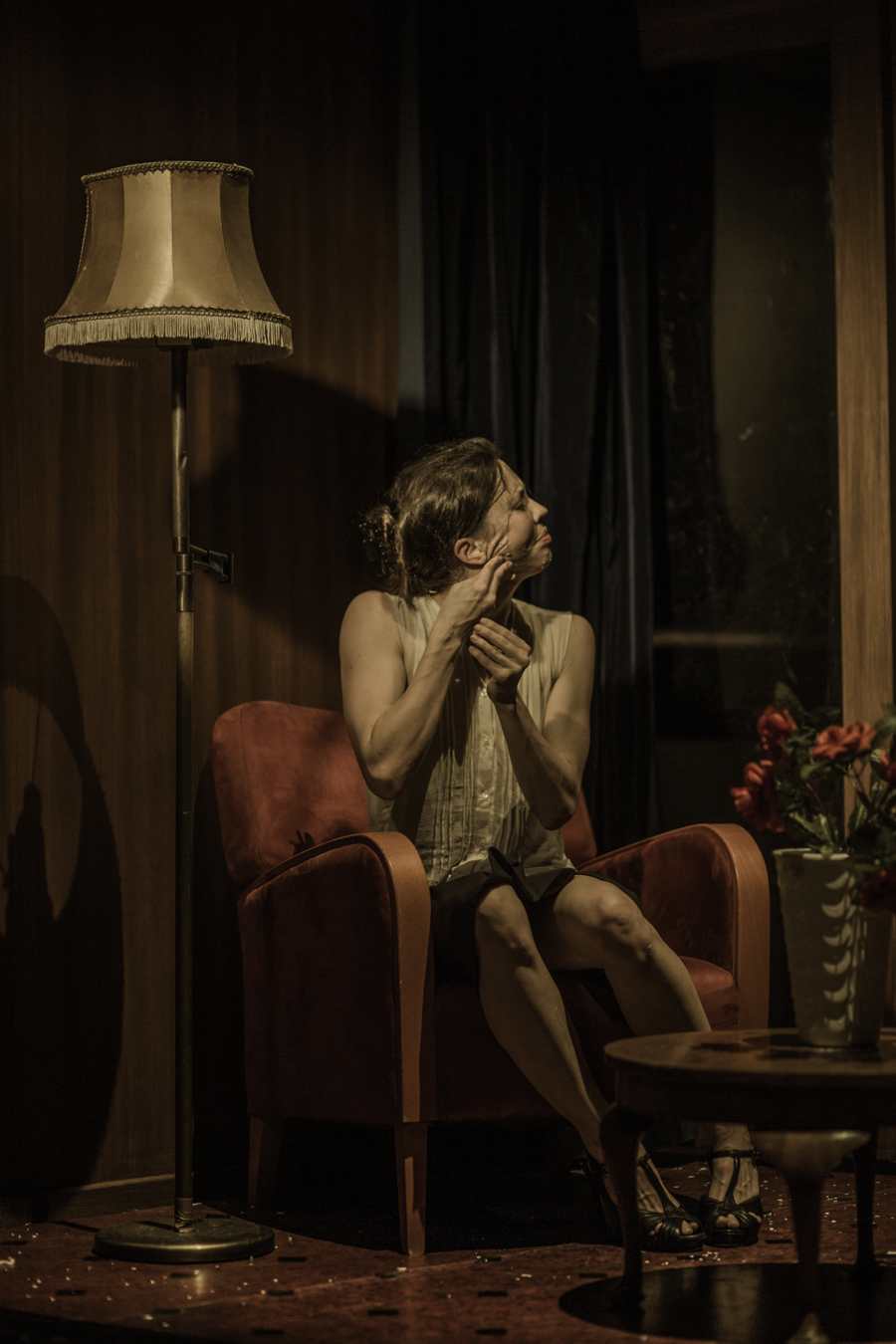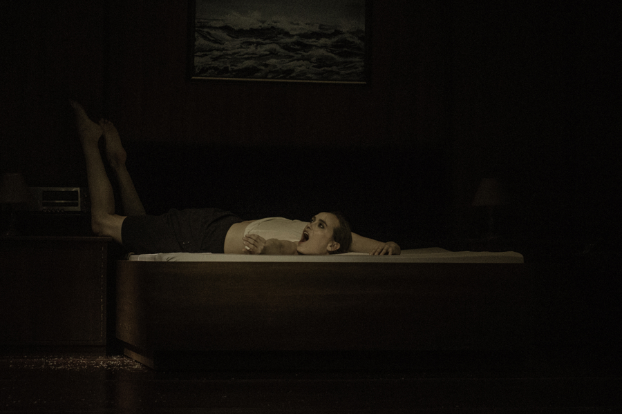 现场光影视效的快速变幻以及穿插其中的丰富声响效果成为一大亮点。玻璃碎裂声、心跳声、船体吱嘎声等各种音效交织在一起,电光石火间观众就入戏了。“偷窥者”极其擅长将电影剪辑手法运用于舞台,就连换场也在观众视线中进行,让人现场见证“蒙太奇剪辑”。而舞台上的人物也如同置身电影镜头中那般孤立迷失。