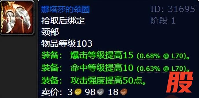 刀锋山任务“犬王”奖励的系列项链都是堪称经典中的经典,而以物理系的此款娜塔莎的颈圈最具代表性,虽然属性全无,但是在初期他这暴击、命中以及常驻攻击强度的绿字在,实力绝对是恐怖如斯直戳天花板水准的,而且只要是正常任务上来的大兄弟,刀锋山“犬王”任务必然是会打卡的,对于狂暴战这种团本开放前根本换不下来,必须打卡的极品任务奖励装备!