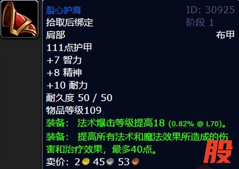 影月谷诅咒密码系列的第三块碎片奖励,这款裂心护肩对于法系DPS都可以闭眼入,有了裂心护肩,你完全可以平稳过渡到卡拉赞阶段,连裁缝制作的装备都可跳过。 再者诅咒密码系列任务也堪称是经典中的经典,你是不可能不去打卡的。